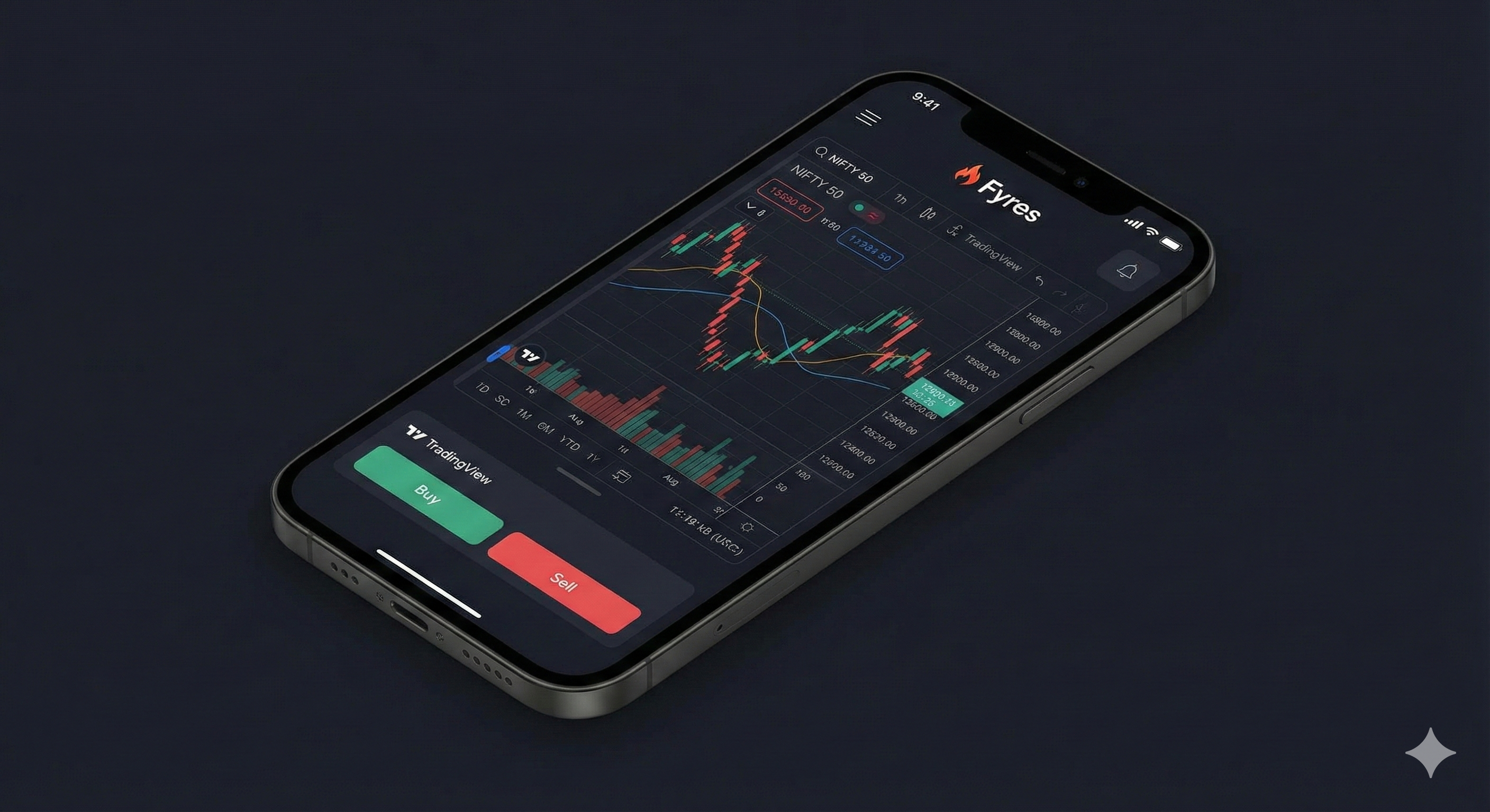 Fyres भारत का एक लोकप्रिय Discount Broker है, जो खास तौर पर ट्रेड्स (Traders) के लिए बनाया गया है। इसका सबसे बड़ा फीचर यह है कि यह TradingView Charts के साथ पूरी तरह इंटीग्रेटेड है। इसका मतलब है कि आप सीधे चार्ट से ही Buy और Sell कर सकते हैं, जो इसे बाकी ऐप्स (जैसे Angel One या Zerodha) से थोड़ा अलग बनाता है।